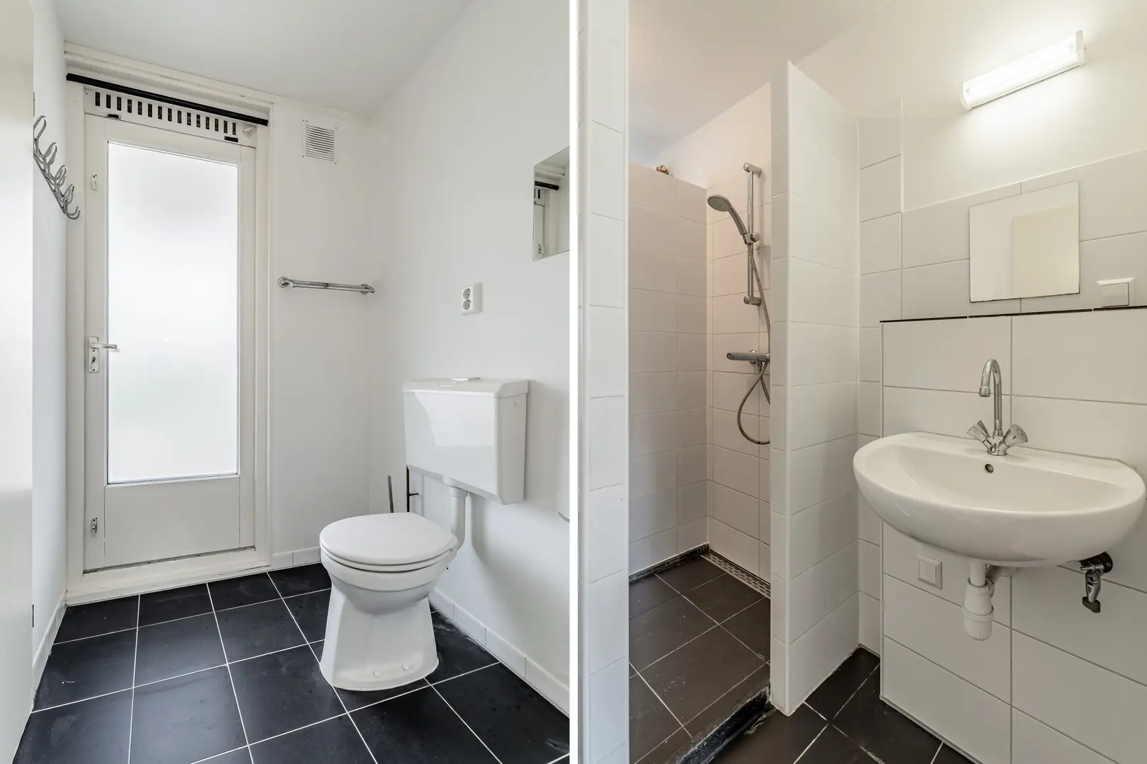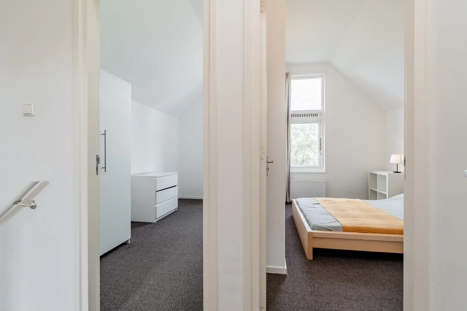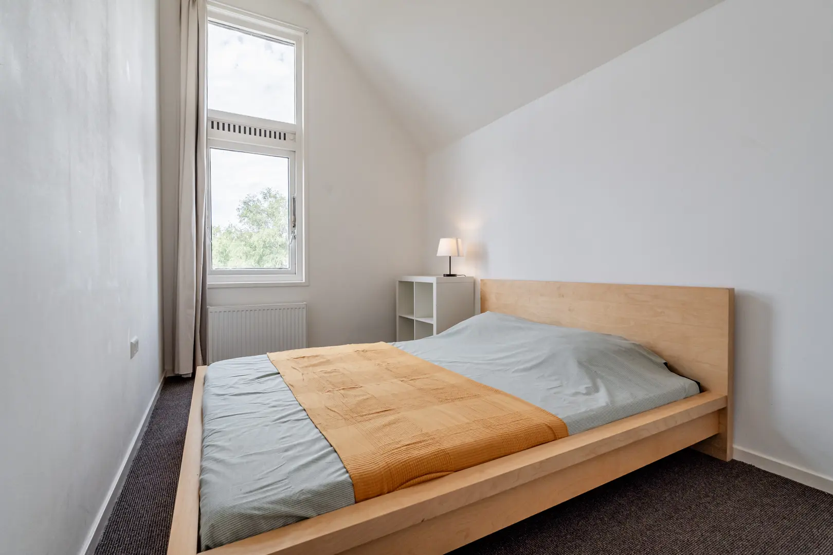 Via de entree bereikt u de hal die toegang geeft tot twee slaapkamers. Deze kamers zijn flexibel in te delen, bijvoorbeeld als werk- of logeerkamer. Verder vindt u hier een badkamer met toilet, douche en wastafel en een praktische ruimte voor de wasmachine.