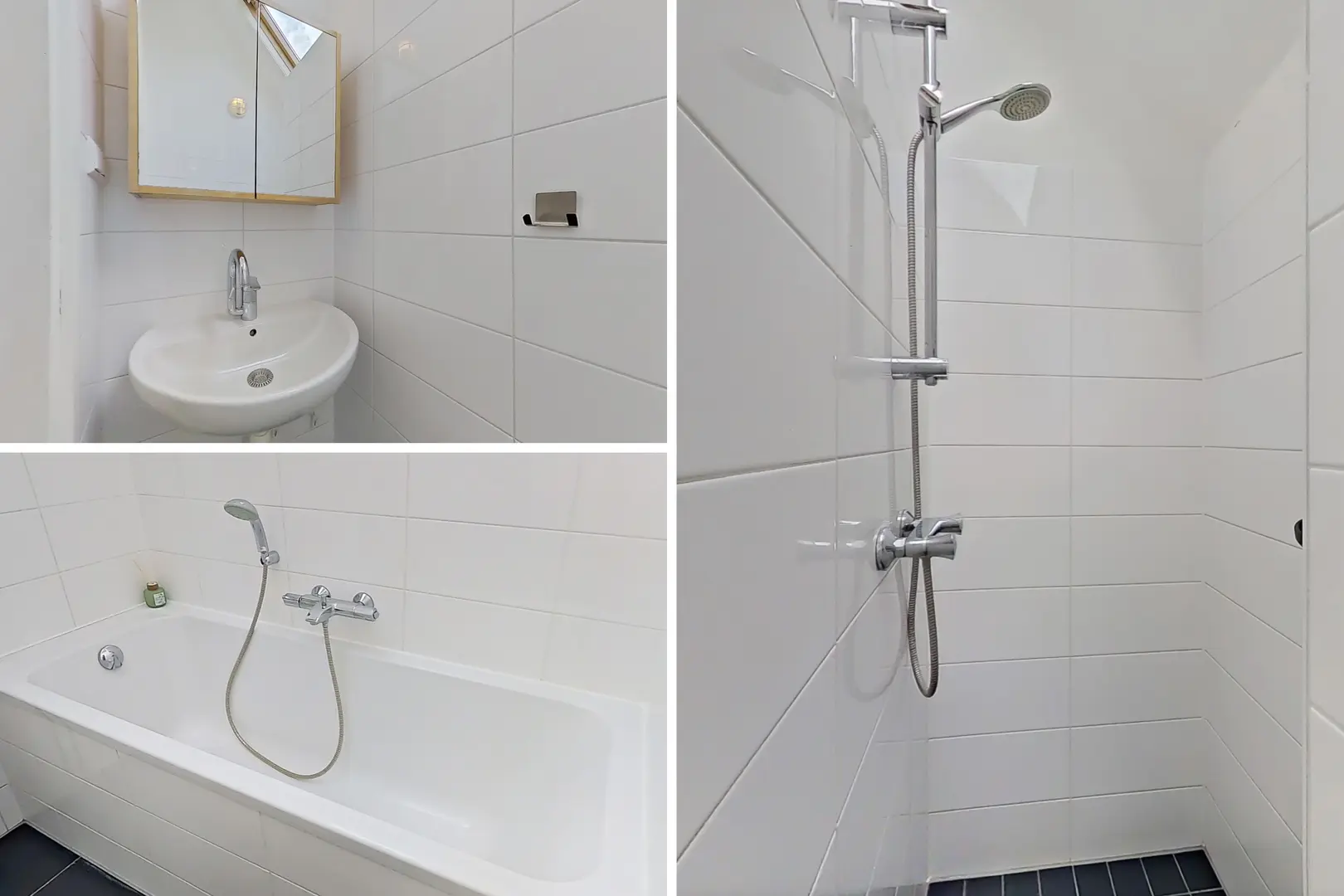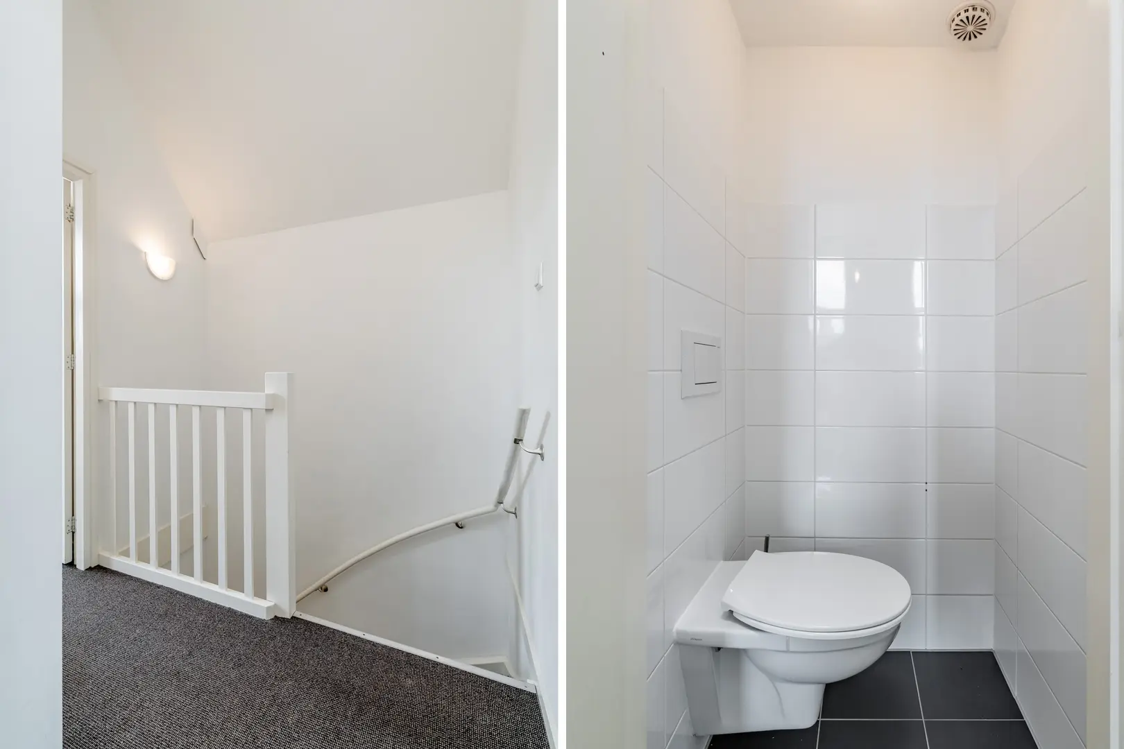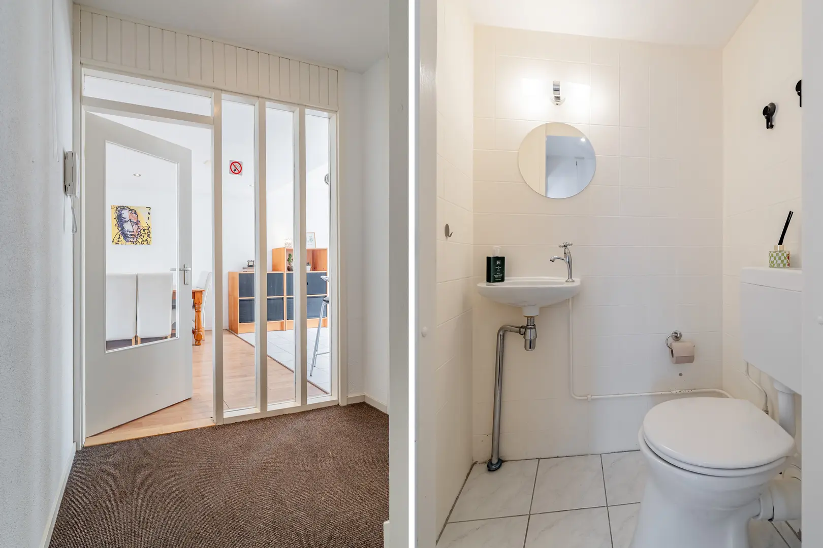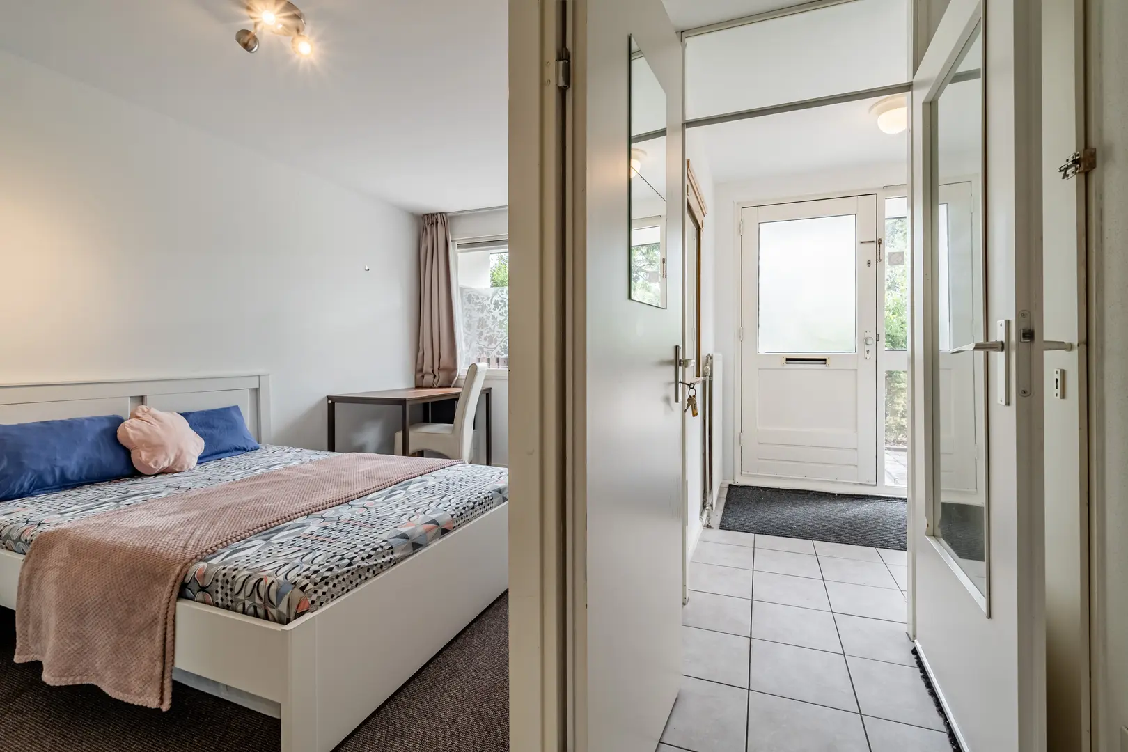 Via de entree bereikt u de hal die toegang geeft tot twee slaapkamers. Deze kamers zijn flexibel in te delen, bijvoorbeeld als werk- of logeerkamer. Verder vindt u hier een badkamer met toilet, douche en wastafel en een praktische ruimte voor de wasmachine.