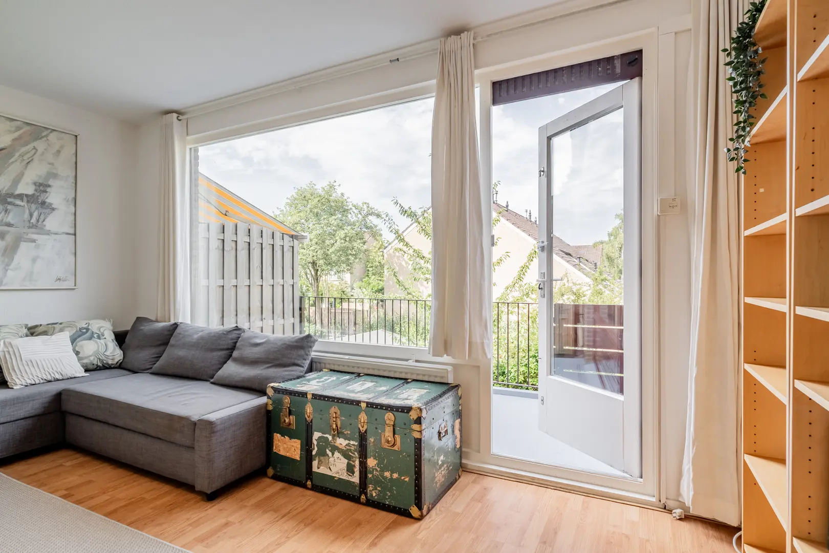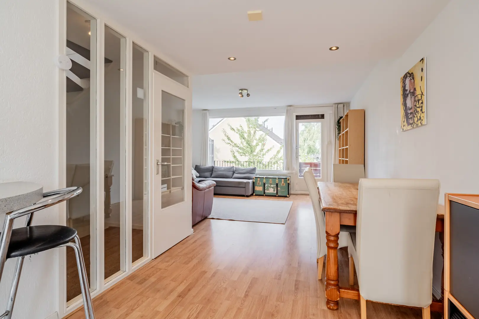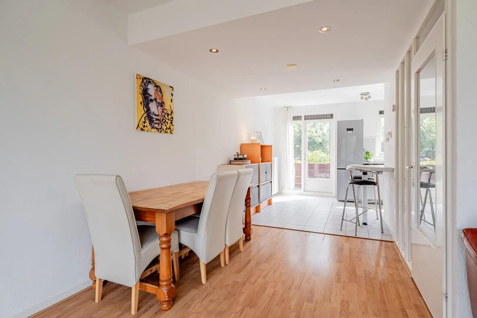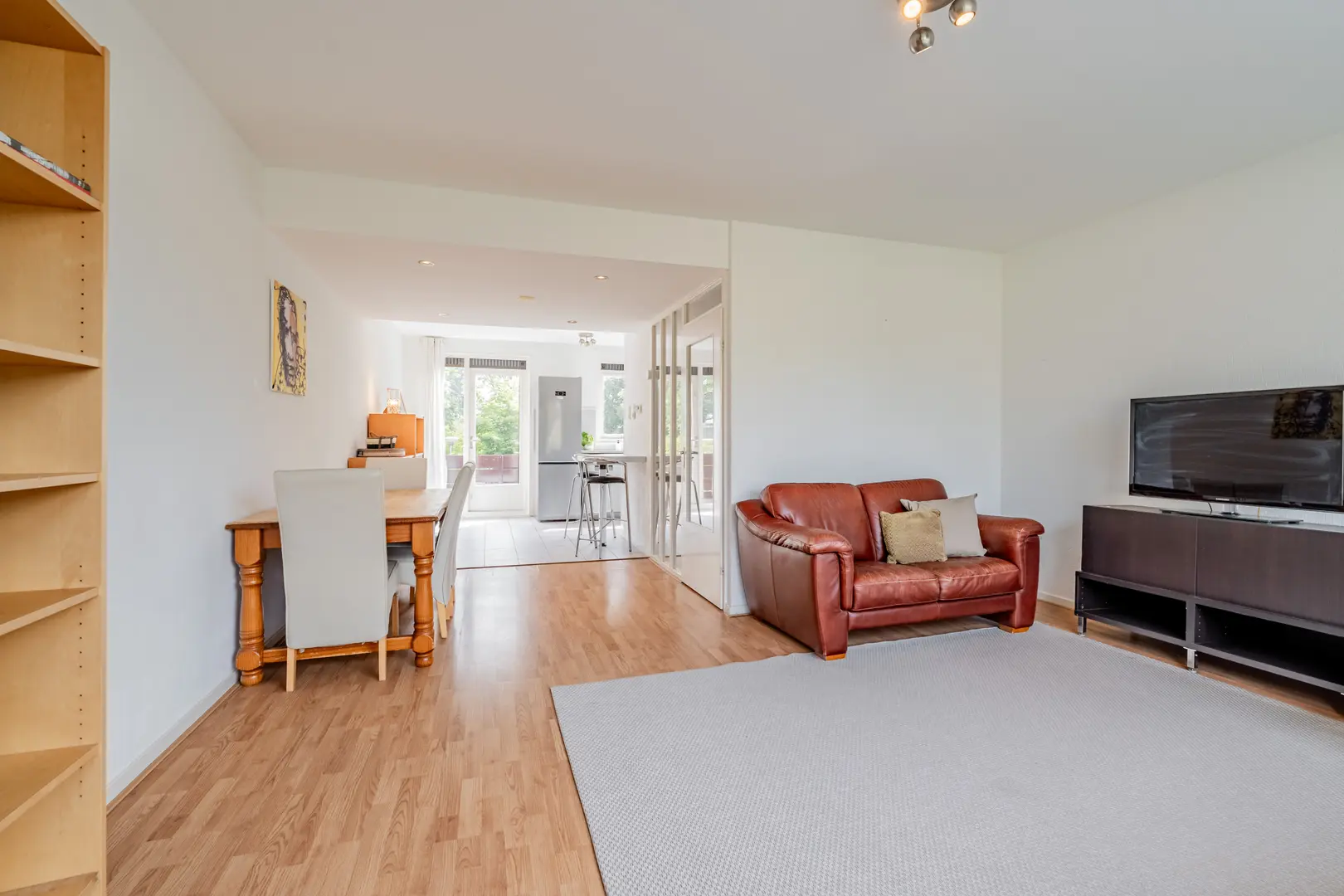 De lichte woonkamer ligt centraal tussen de balkons aan de voor- en achterzijde. De open keuken vormt het hart van het huis, met volop ruimte voor een grote eettafel. Het balkon aan de achterzijde ligt op het westen, perfect voor de middag- en avondzon, terwijl het balkon aan de voorzijde juist de ochtendzon vangt.