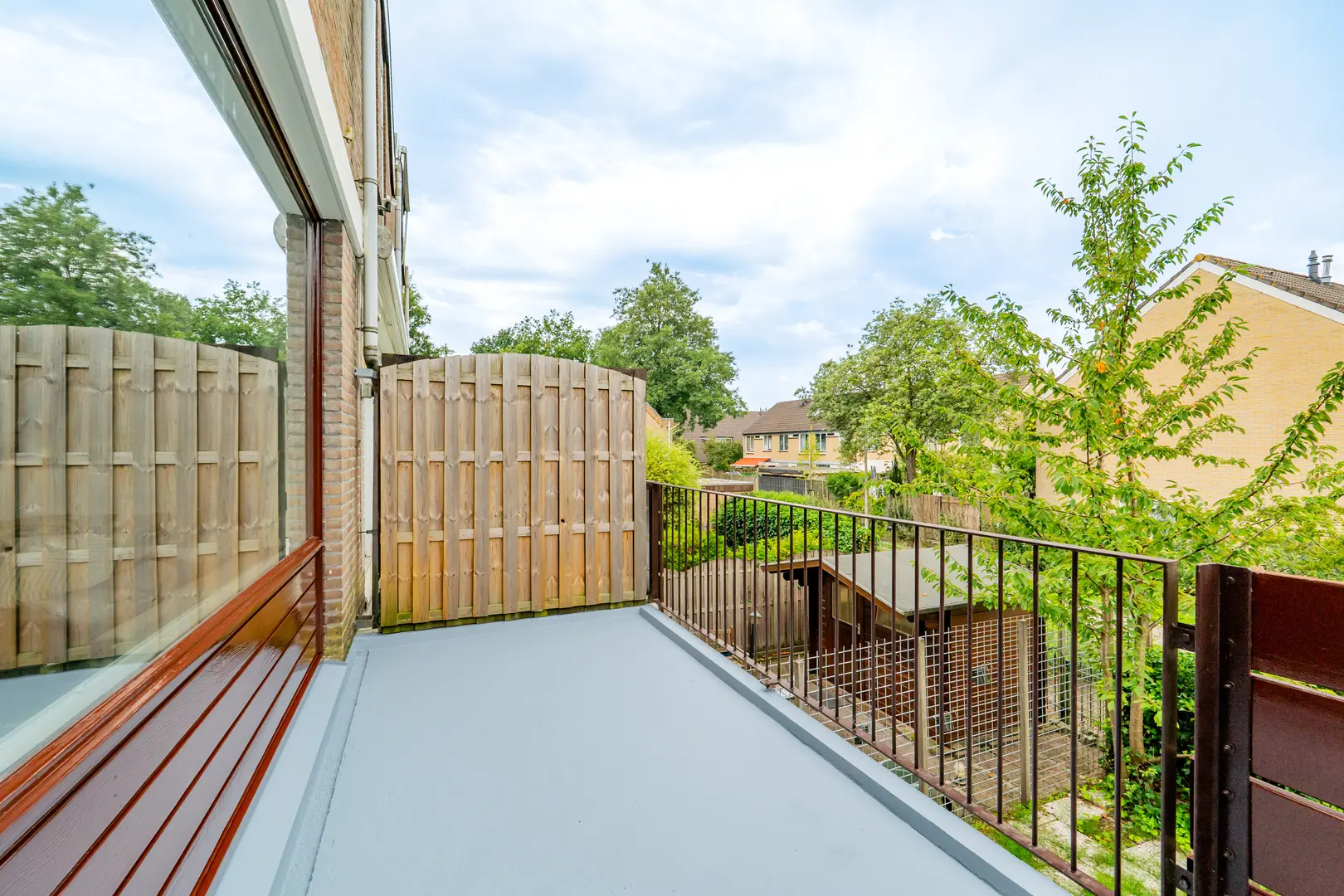 De zonnige achtertuin op het westen biedt volop gelegenheid om in de middag- en avondzon te genieten. Daarnaast zorgen de twee balkons aan de voor- en achterzijde voor extra buitenruimte op elk moment van de dag. De woning beschikt bovendien over een eigen oprit – handig indien u een elektrische auto heeft – en gratis parkeren kan voor de deur.